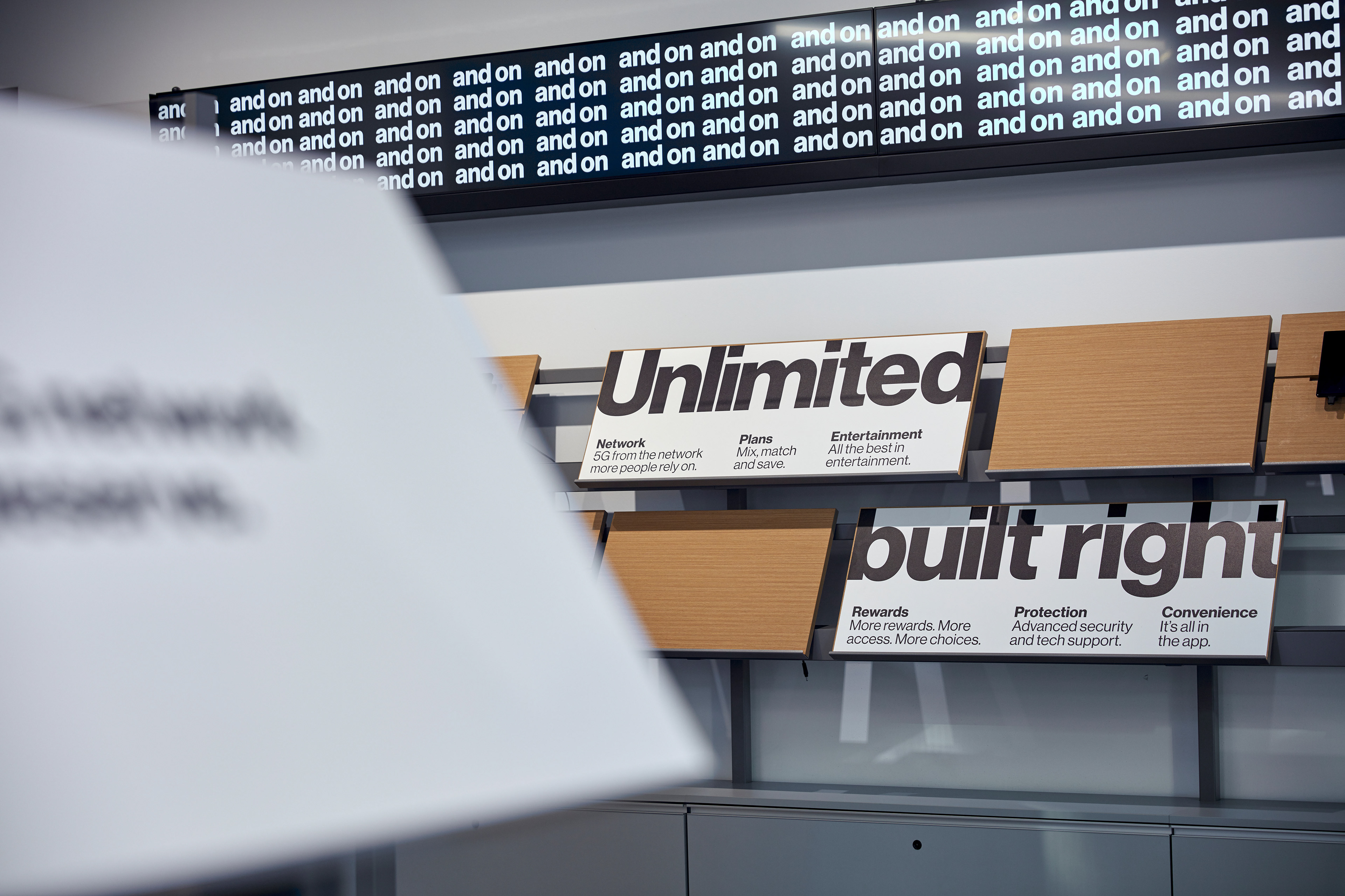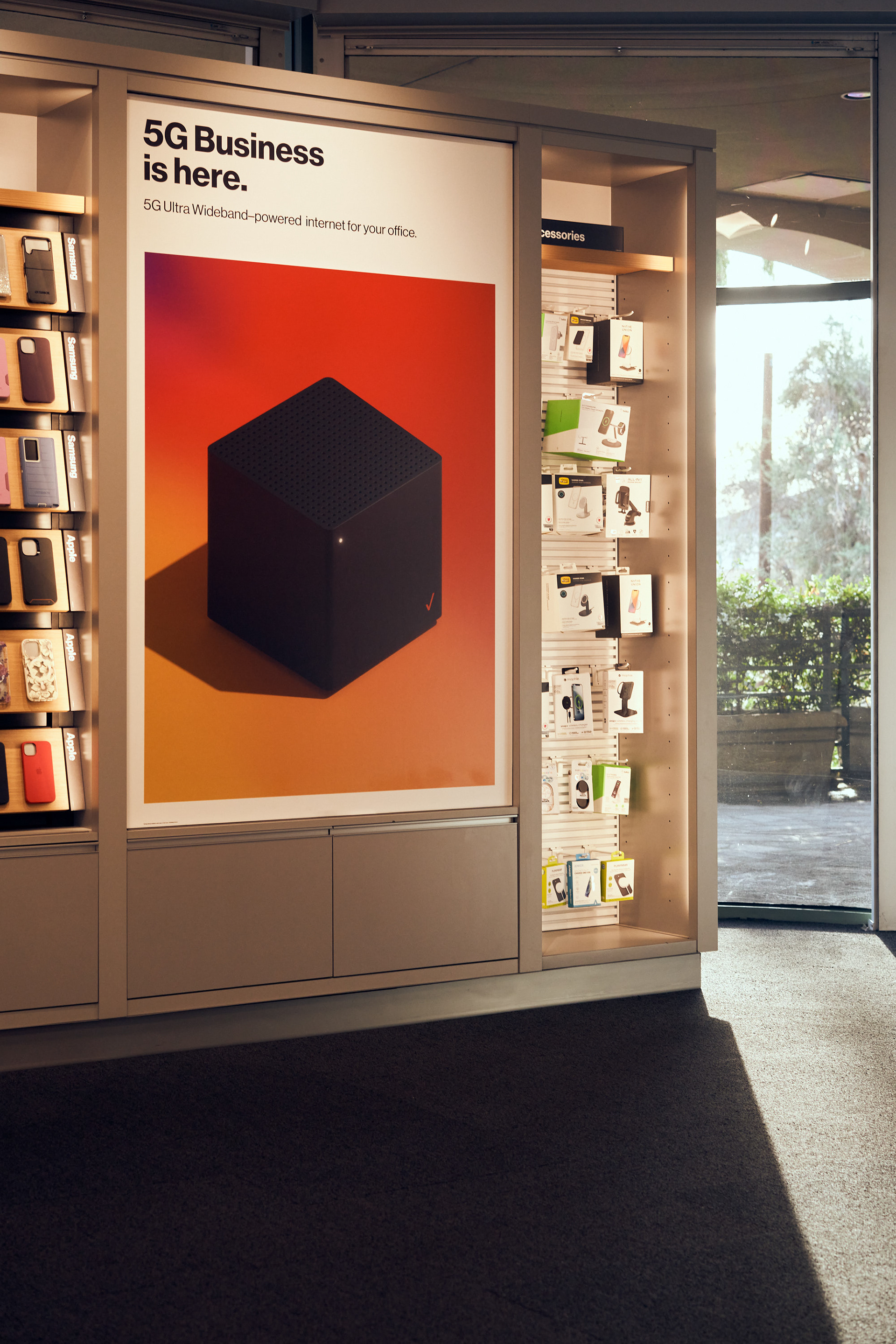 Print, digital, motion, and environmental design for Verizon's nationwide network of retail stores. On-site photo direction and shoot production documenting each campaign.